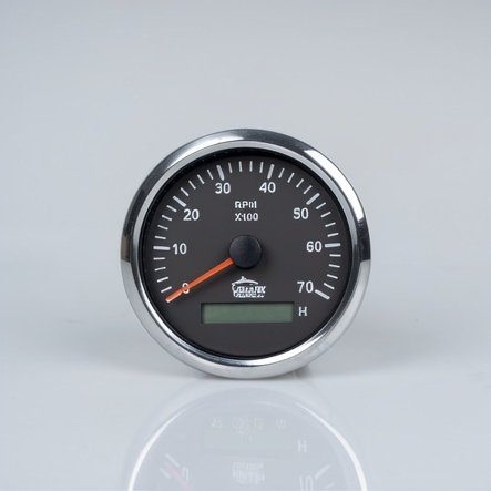 Тахометр черный с серебристой окантовкой со счётчиком моточасов 0-7000 (0-250 градация) 85 мм.