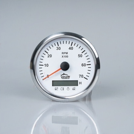 Тахометр белый с серебристой окантовкой со счётчиком моточасов с доп индикаторами 0-7000 (1.0-10.0)