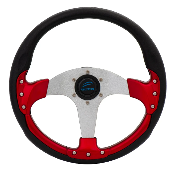 Колесо рулевое 161-A16 алюм.+ полиуретан с красными вставками, диаметр 350 мм